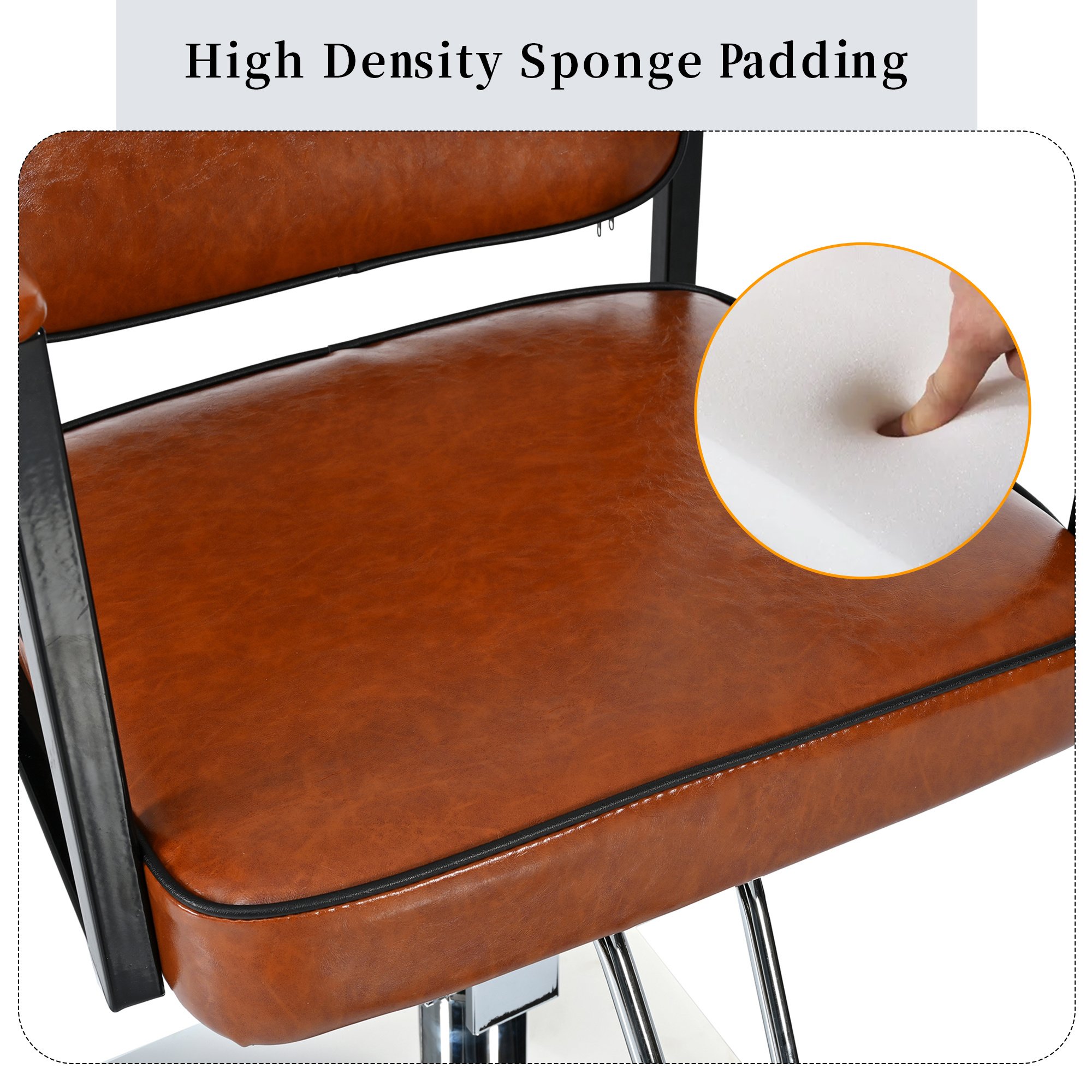 High-density Sponge & High-quality PU LeatherWith high density sponge padding,provide your clients with superior comfort.PU leather covered surface, easy to clean, just wipe to remove dirt.360°Swivel & Adjustable Seat HeightBarber chairs can swivel 360° with lockAdjustable hydraulic pump,pinpoint adjustable seat heightNote the chair has no headrest and couldn't recline.